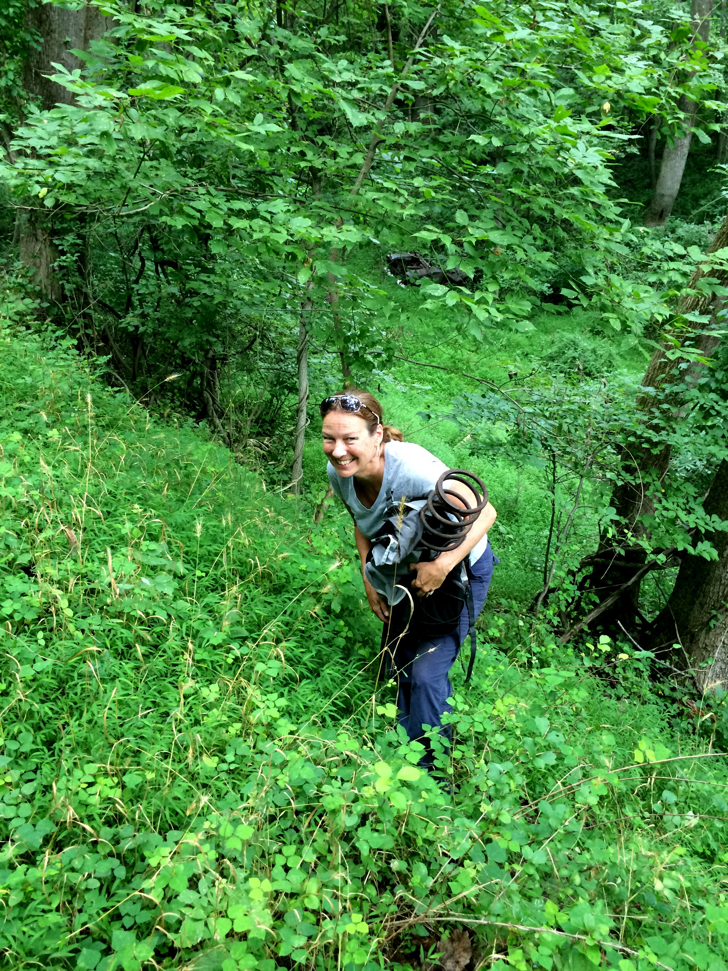 Here I am coming out of the ditch with my treasure, You can see a little bit of my car in the background.