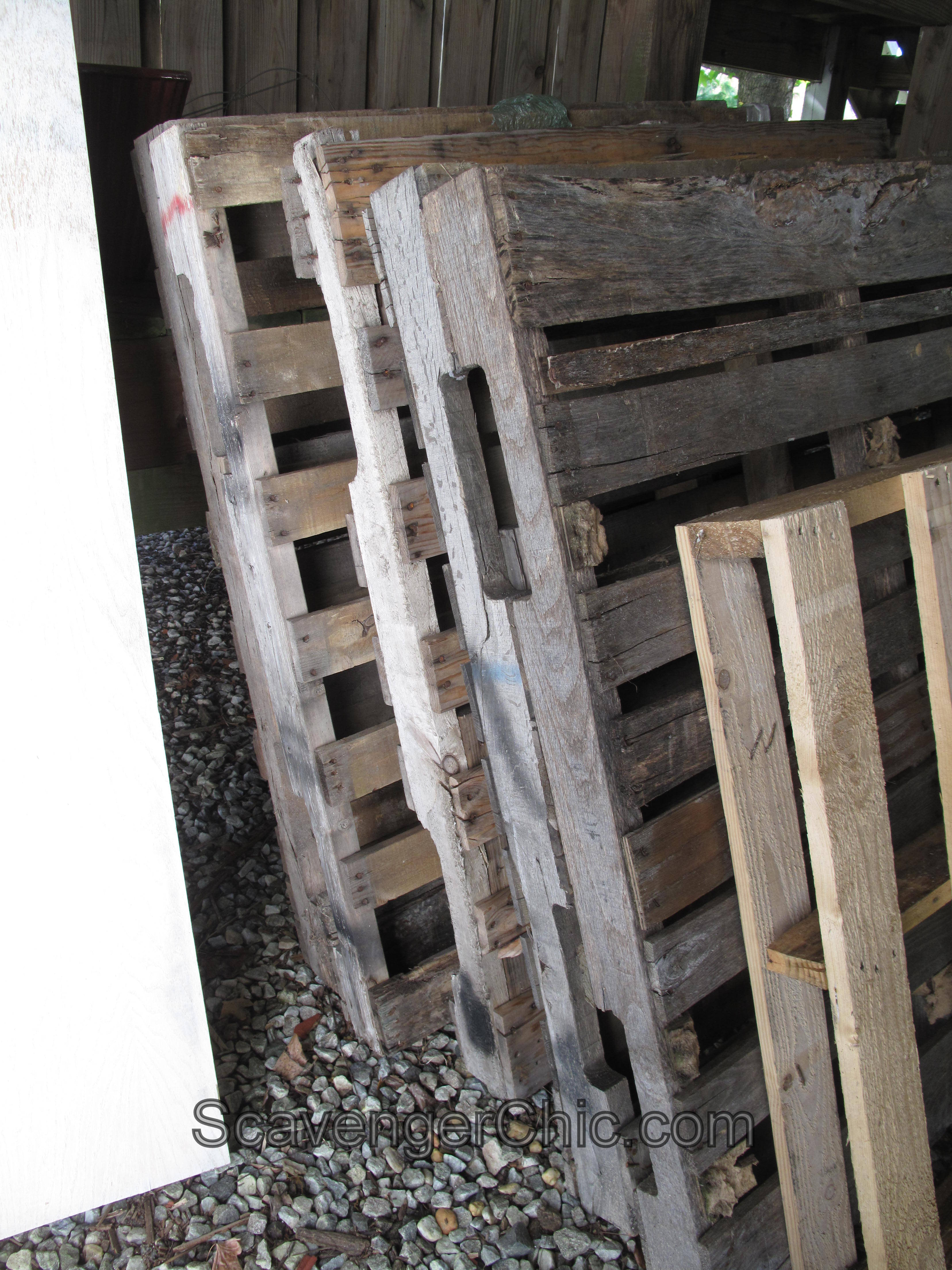 Go to your supply of pallets and pick out a good one. What?! you don’t have a supply of pallets or pallet wood? Well, if you don’t happen have a supply of this free rustic wood, you could use 1×4’s or 1×6 treated wood…but of course, then you’d have to pay for it. This wonderful supply was just sitting and waiting for me next to a dumpster.