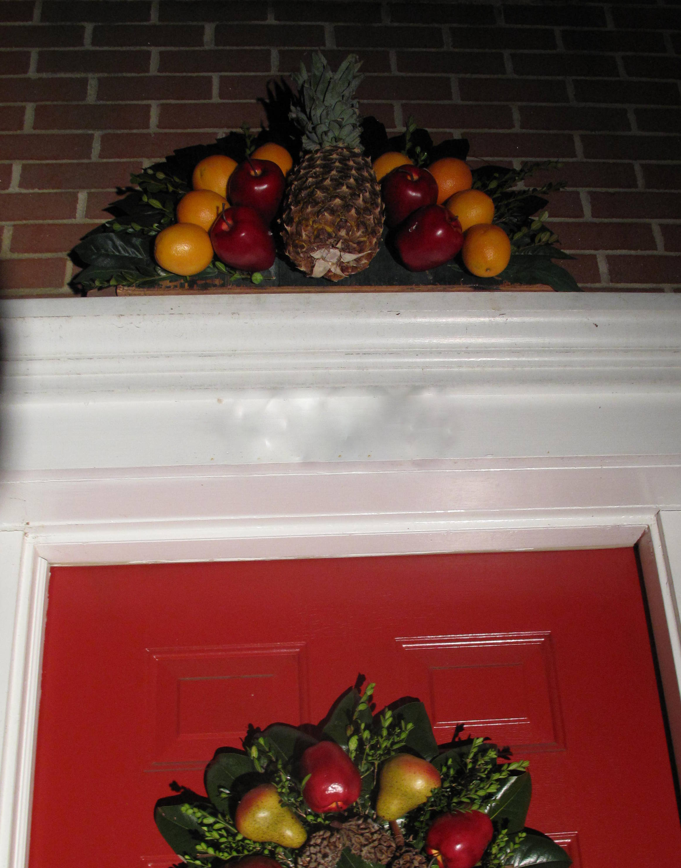 The other day I showed you how to make a Williamsburg inspired fruit wreath. Well today I’m back with his companion piece, an over the door fruit fan. Surprisingly easy and fun to make.